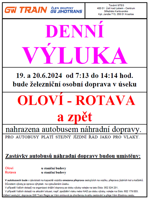 Úvod > Aktuality > Denní výluka Oloví - Rotava (19. a 20.6.2024)